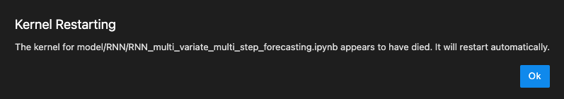 모델을 jupyter lab에서 돌리는데 어느 순간부터 위 그림같이 커널이 죽는 문제가 발생했다