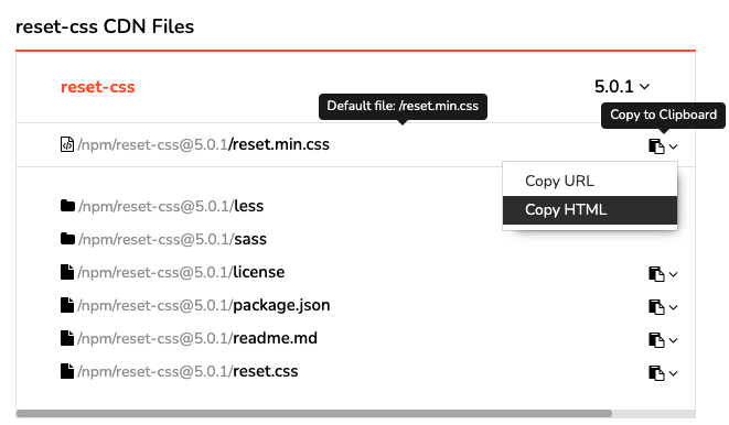 아래 링크에서 reset.min.css 파일의 HTML link 태그를 복사해 head에 붙여넣어준다.