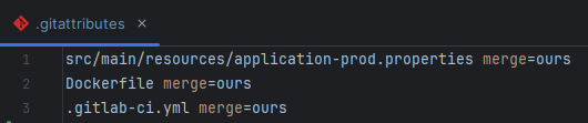 파일명 merge=ours 형태로 작성